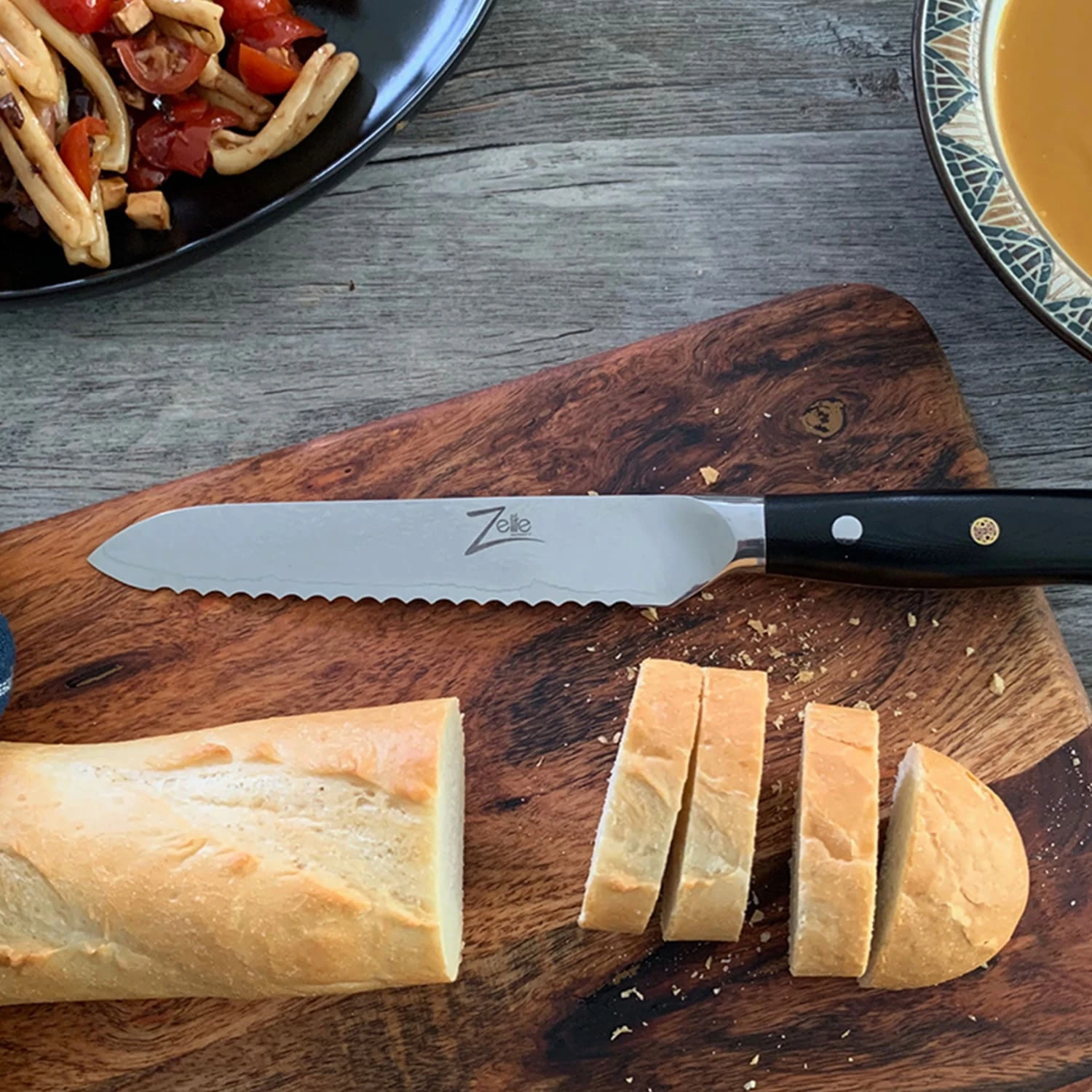 Ein Antlitz wie ein elegantes Brotmesser, eine Einsatzfähigkeit wie ein talentierter Generalist: Das 5,5″ Allzweckmesser mit Wellenschliff verfügt über eine extrascharfe, gezahnte Klinge. Dadurch erfasst es jede Oberfläche ideal und durchtrennt jegliches Schnittgut ohne großen Kraftaufwand – von weichem Gemüse über knackige Brotkruste oder Schale bis hin zum feinen Kuchen mit Obst- und Streuselgarnitur. Ganz gleich, welche Lebensmittel und Zutaten du schneiden möchtest, dieses edle Universalmesser ist der Tausendsassa in deiner Hand.