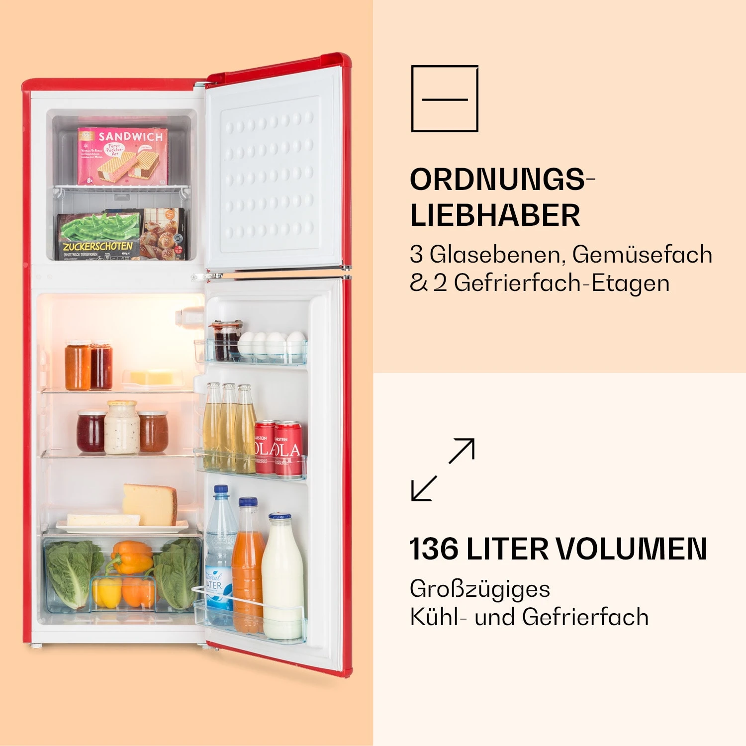 Audrey Kühl- & Gefrierkombination 97l/39l Retro-Look 2 Böden