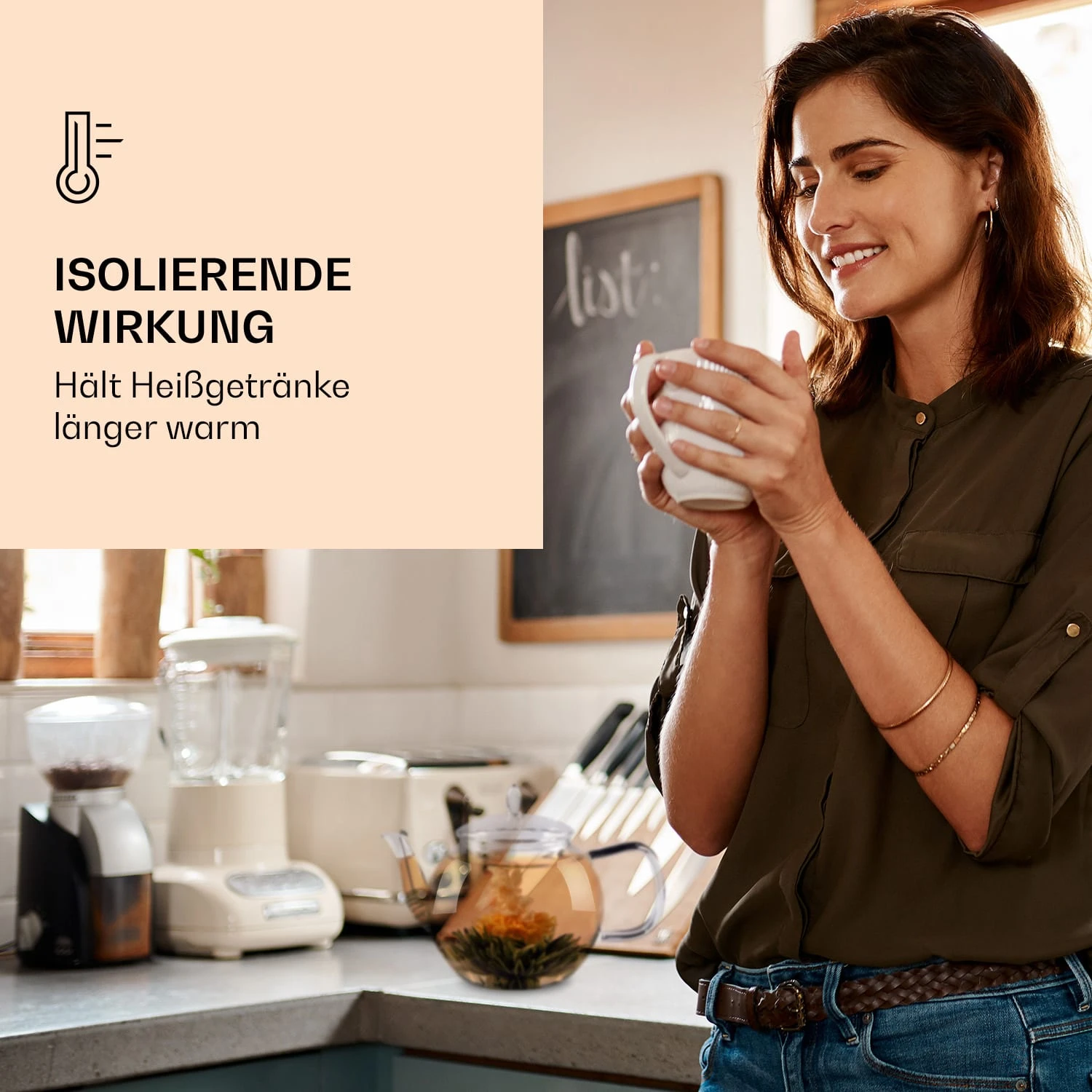 Ein verführerischer Anblick auf dem Teetisch: Die edle Glaskanne Bedida von Feelino by Klarstein versprüht durch ihre bauchige Form und den harmonisch geformten Glasdeckel pure Nostalgie. Durch die mundgeblasene Herstellung aus edlem Borosilikatglas ist hier jede Teekanne ein Unikat. Neben einzigartiger Glasqualität mit hoher Beständigkeit und guter Wärmspeicherung besticht hier auch ein praktisches und zugleich dekoratives Accessoire: Im geschwungenen Auslauf sitzt ein spiralförmiges Teesieb aus Edelstahl – so bleibt loser Tee beim Ausgießen in der Kanne. Dank des hochwertigen Borosilikatglases entsteht ein Thermoeffekt, der deinen Tee lange warm hält. Abgerundet wird die Schönheit der edlen Glaskanne hier mit exotischen Teeblumen, welche Teegenuss zu einem kleinen Kunstwerk der Natur machen: Nach dem Aufbrühen entfalten sich die Teekugeln zu farbenfrohen, prächtigen Blumen, welche durch das bauchige Glas betrachtet stark vergrößert werden. Neben dieser beeindruckenden Blumenpracht überzeugen die Teeblüten auch durch einen vollmundig aromatischen Geschmack und können für mehrere Aufgüsse verwendet werden.