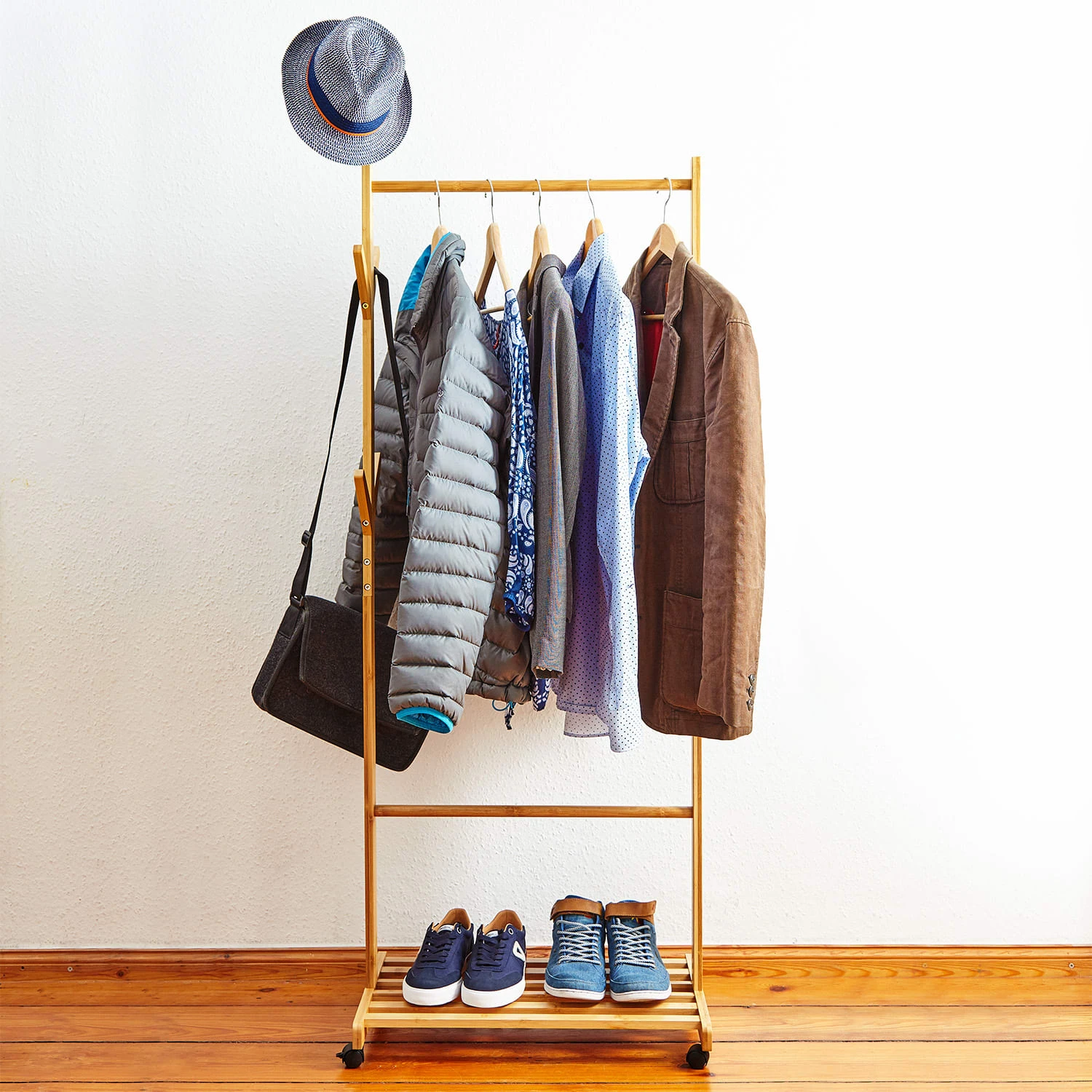 Garderobe Ablage Kleiderständer 57,5 X 173cm Asymmetrisch Bambus