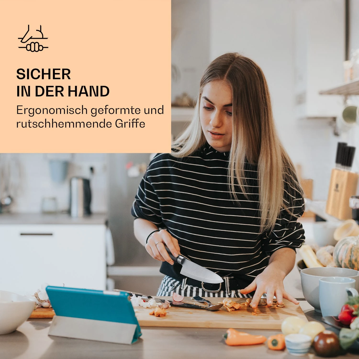 Kitano 8tlg. Messer-Set Mit Block 7 Messer Stahl Edler Holzblock