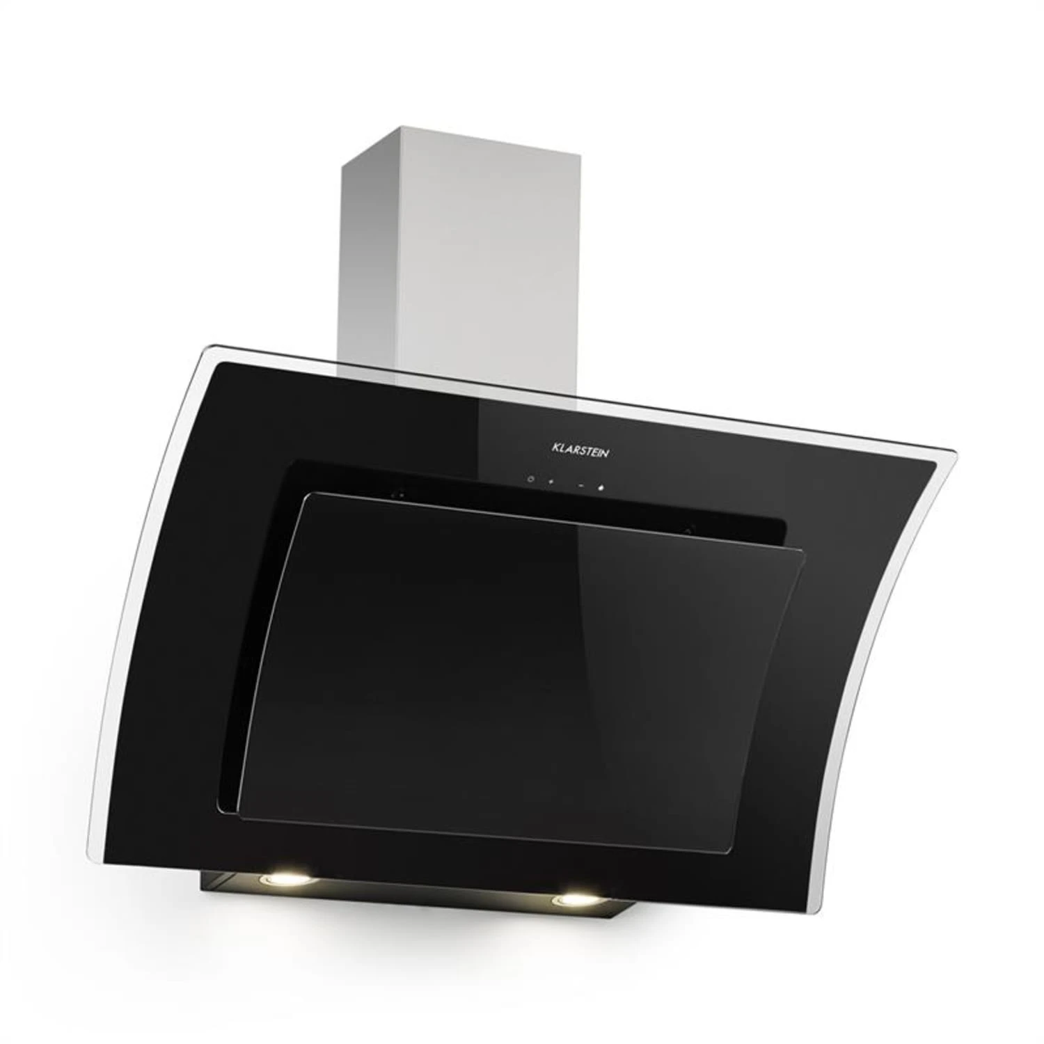 Besonderen Reiz erlangt die Klarstein Sabia Dunstabzugshaube nicht zuletzt durch ihr inwärts geschwungenes Design sowie das verwendete schwarze Sicherheitsglas. So verleiht die kopffreie Wandabzugshaube jeder Küchenzeile einen Hauch von Luxus. Zwei zuschaltbare Kochflächenlampen verleihen ihr dabei nicht nur zusätzlichen Glanz, sondern ermöglichen auch den ungetrübten Blick in Pfannen und Töpfe. Damit nichts die edle Oberfläche durchbricht, sind sämtliche Bedienelemente als Touchpanel mit Display direkt in die Glasfläche integriert.